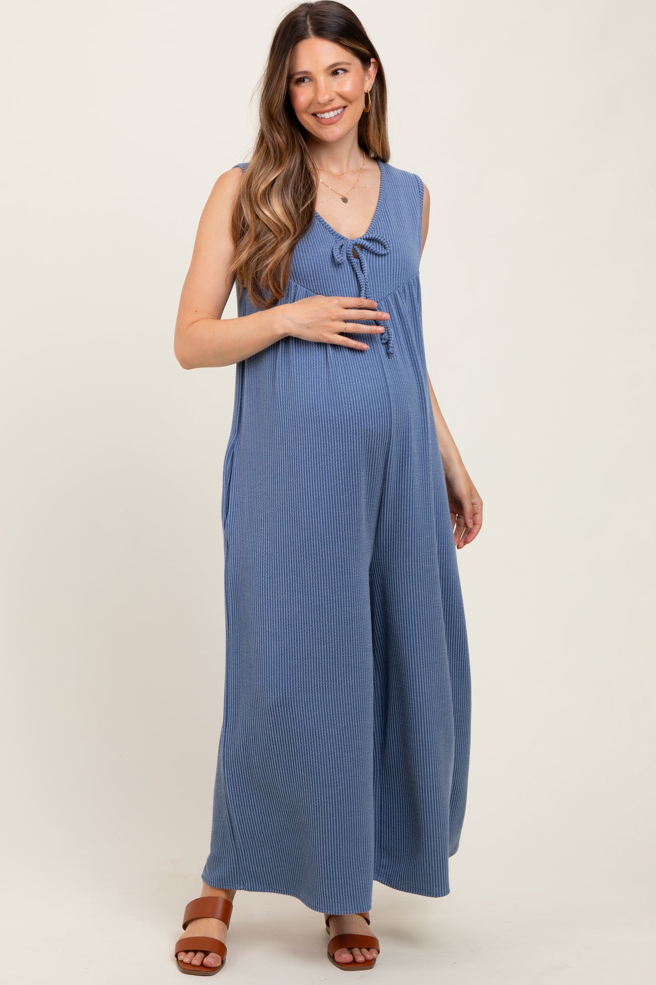 Blue Vintage Denim Sleeveless Baggy Fit Maternity Jumpsuit