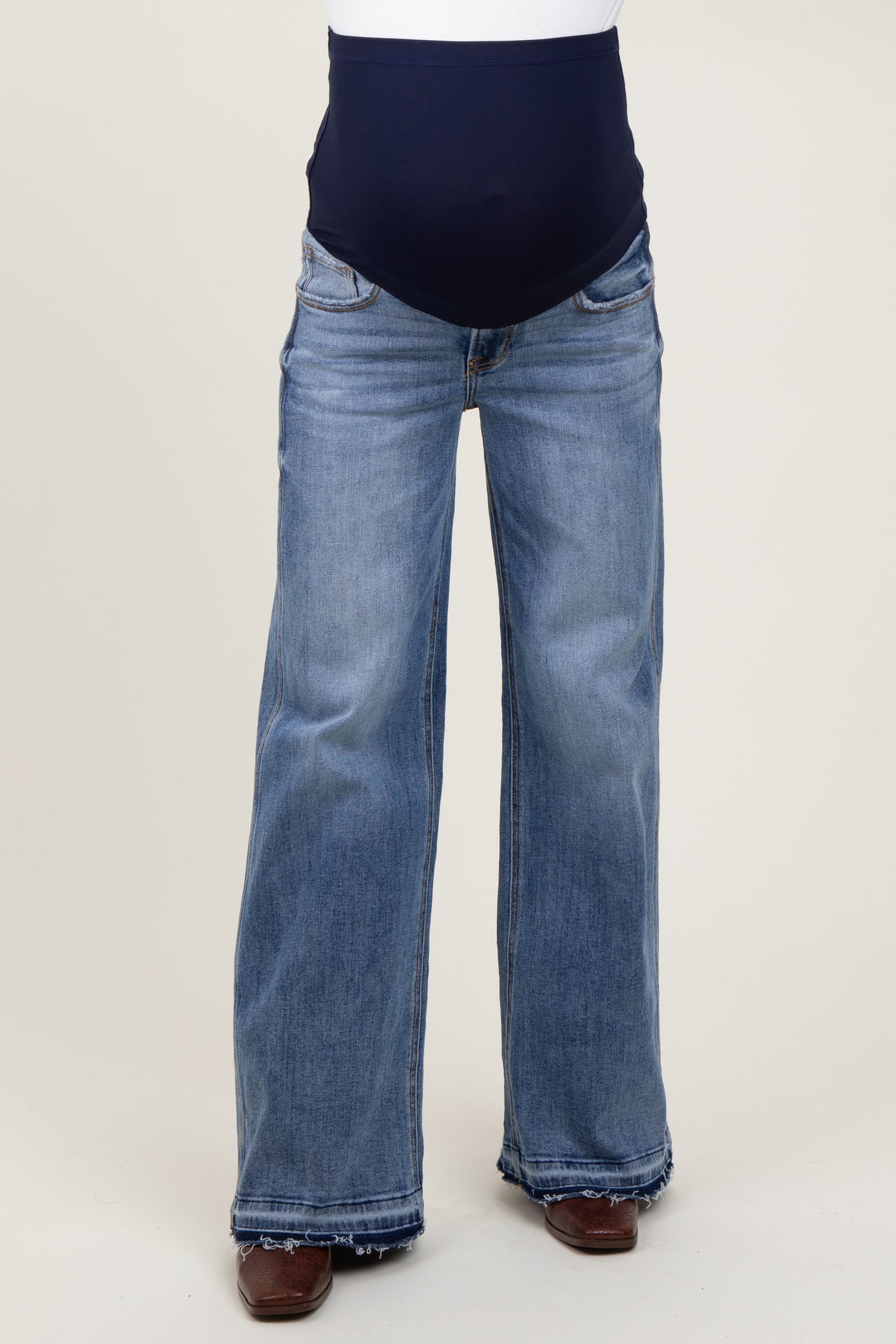 Blue Vintage Wash Extra Wide Leg Released Hem Maternity Jeans