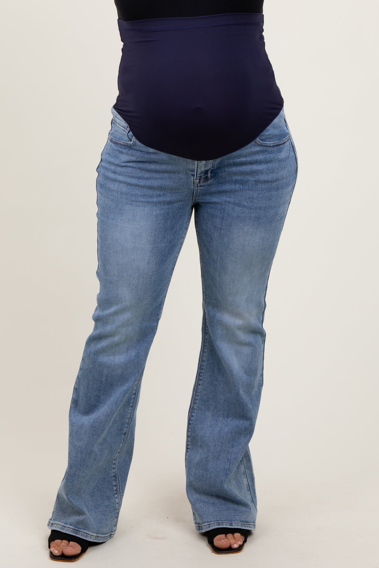 Blue Vintage Wash Flare Leg Maternity Plus Jeans
