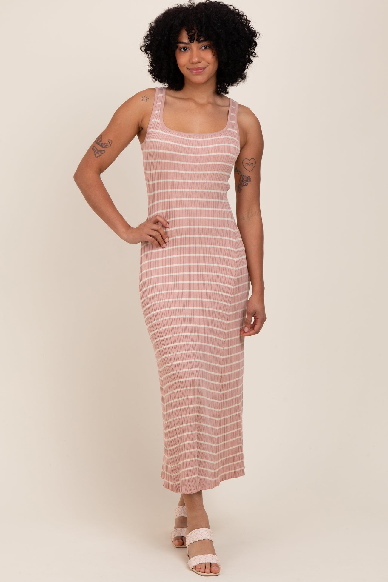Blush/Cream Lightweight Rib Fit And Flare Midi Dress