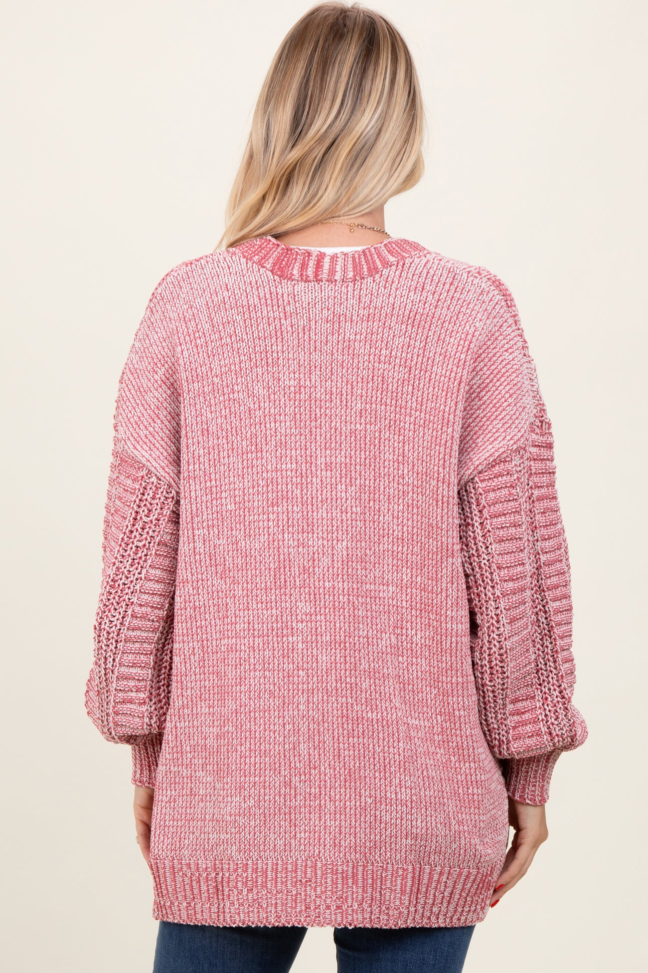 Brick Two Toned Oversized Cable Knit Cardigan