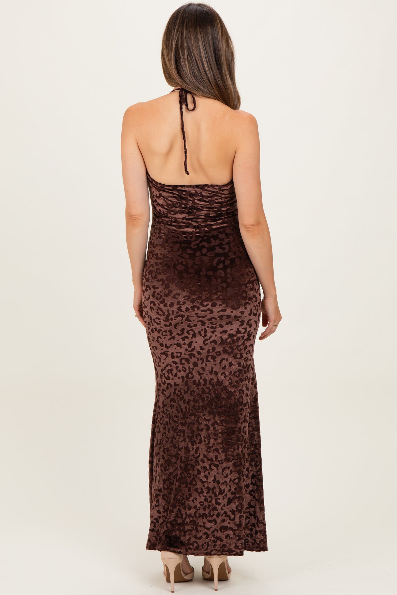 Embrace effortless style and comfort with our Brown Animal Print Halter Maternity Maxi Dress. Crafted from a soft, stretchy fabric, this dress gently hugs your growing bump while providing all-day comfort. The chic halter neckline and subtle cowl detail add a touch of elegance, perfect for both casual outings and special occasions. Featuring a trendy animal print in warm brown tones, it’s a must-have for any maternity wardrobe. Pair it with your favorite heels or flats to complete the look. Available in multiple sizes to flatter every stage of pregnancy. Celebrate your journey in style with this versatile maxi dress!