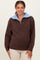Brown Contrast Collar Half Zip Maternity Sweater
