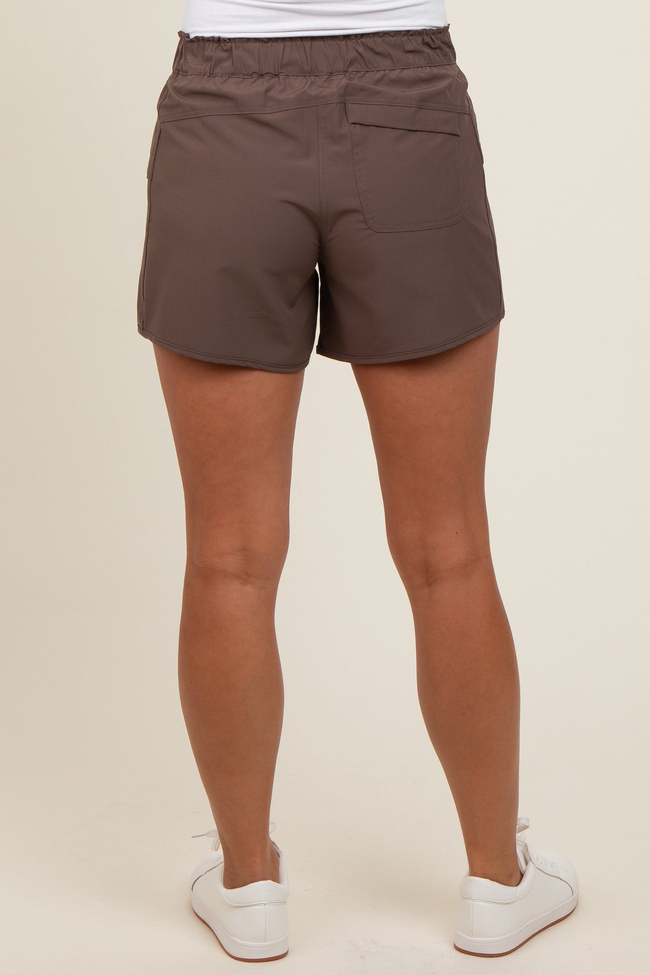 Brown Elastic Waist Side Pocket Active Maternity Shorts