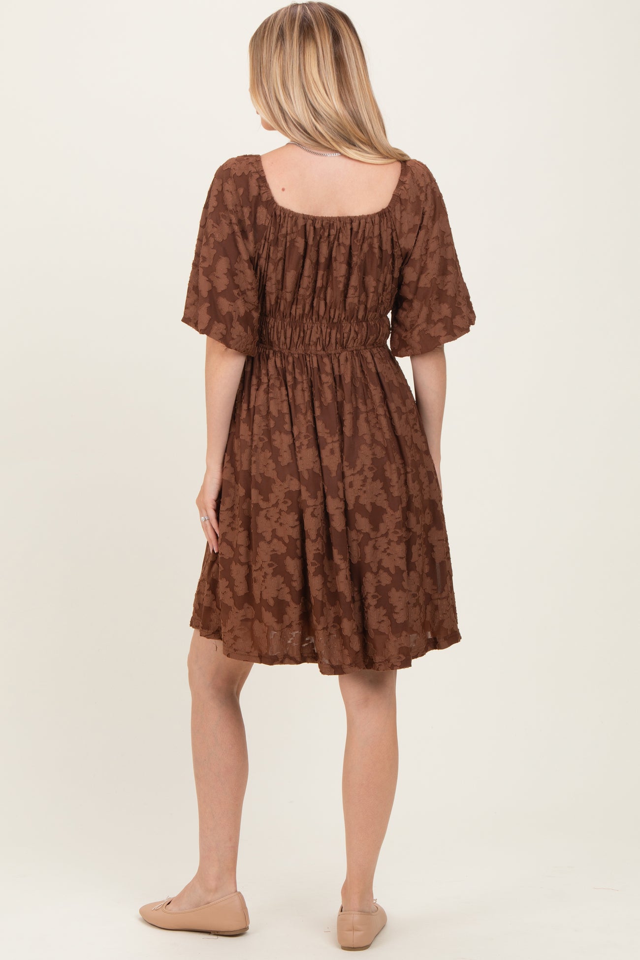 Elevate your wardrobe with this Brown Floral Square Neck Dress, perfect for any occasion. Featuring a flattering square neckline and short puff sleeves, this dress combines classic charm with modern style. The rich brown fabric showcases a subtle floral pattern adding effortless elegance. Designed with an elasticized waist for a comfortable, cinched fit and a flowy A-line skirt for easy movement. Complete with convenient side pockets, this dress is both stylish and practical. Pair it with flats for daytime ease or dress it up with heels for a chic evening look. Your new go-to dress for versatile, timeless fashion!