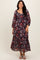Brown Floral V-Neck Bubble Sleeve Maxi Dress
