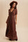 Brown Lace Trim Button Down Maxi Dress