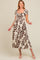 Brown Leaf Print Off Shoulder Smocked Maternity Midi Dress