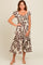 Brown Leaf Print Off Shoulder Smocked Midi Dress