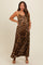 Brown Leopard Print Pleated Maternity Maxi Dress