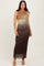 Brown Ombre Mesh Ruched Sleeveless Midi Dress