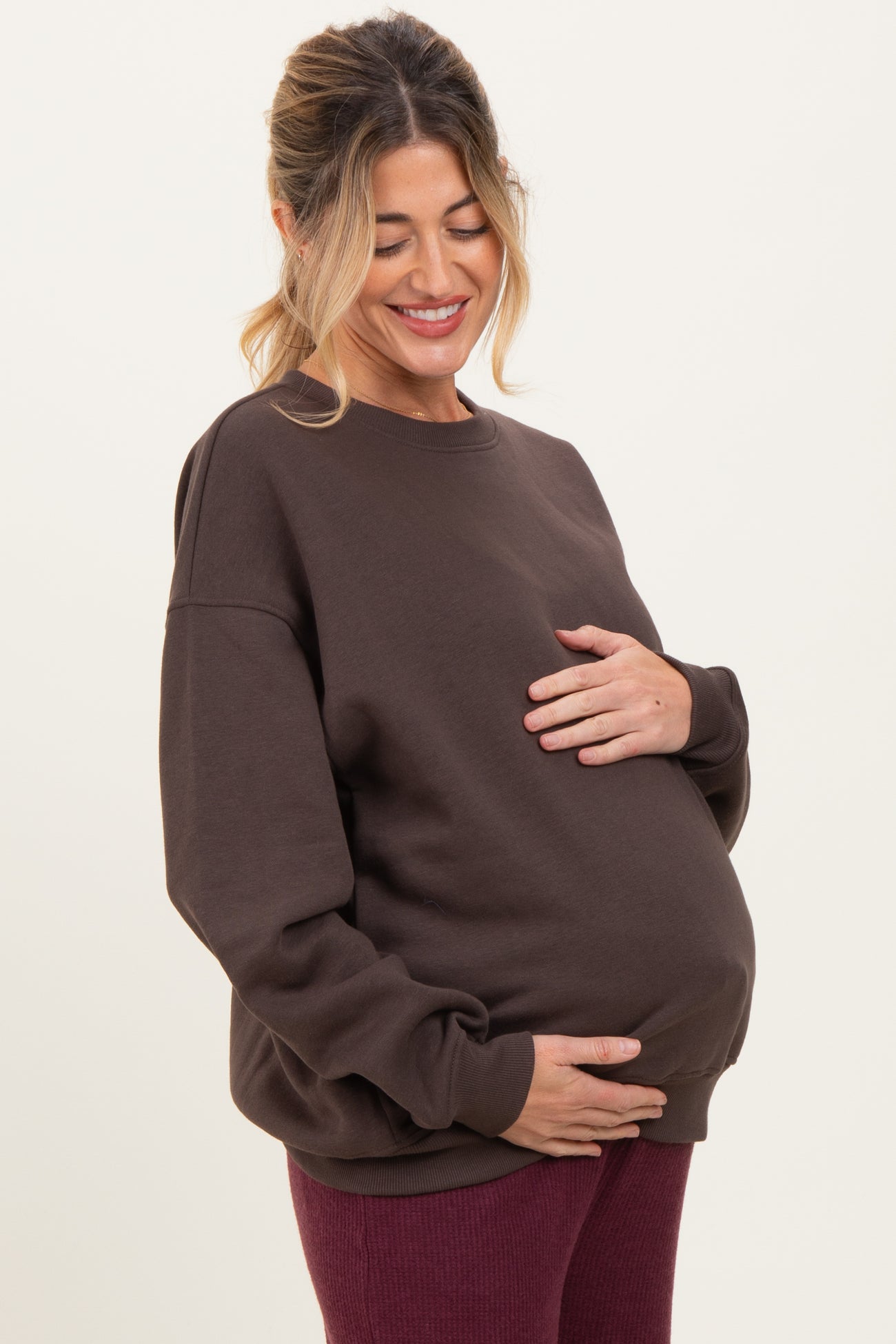 Brown Oversized Fleece Maternity Sweatshirt