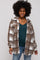 Details A plaid print sherpa jacket featuring a collared neckline, two front pockets, a button down front, long sleeves and inner lining. Content + Care