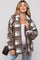 Details A plaid print maternity sherpa jacket featuring a collared neckline, two front pockets, a button down front, long sleeves and inner lining. Content + Care