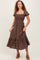 Brown Plaid Smocked Puff Sleeve Midi Dress
