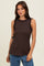Brown Rib Knit Ruffle Trim Sleeveless Top