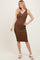 Brown Ribbed Fitted Sleeveless Snap Button Dress