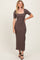 Brown Ribbed Short Sleeve Side Slit Midi Dress