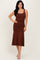 Brown Ruched Drop Waist Sleeveless Midi Dress