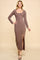 Brown Scoop Neck Long Sleeve Front Slit Maxi Dress