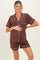 Brown Short Sleeve Button Down Shirt Shorts Maternity Set