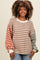 Elevate your casual style with our Brown Striped Colorblock Bubble Sleeve Top. Featuring a soothing mix of brown stripes on the body, with contrasting burnt orange and olive green colorblock sleeves, this top brings playful charm to any outfit. The bubble sleeves add a trendy, voluminous touch, while the relaxed fit ensures all-day comfort. Crafted from a soft, breathable knit fabric, it’s perfect for layering or wearing solo. Pair with your favorite jeans or skirts for a chic, effortless look. Ideal for cozy fall days or casual outings, this unique top is a must-have addition to your wardrobe!