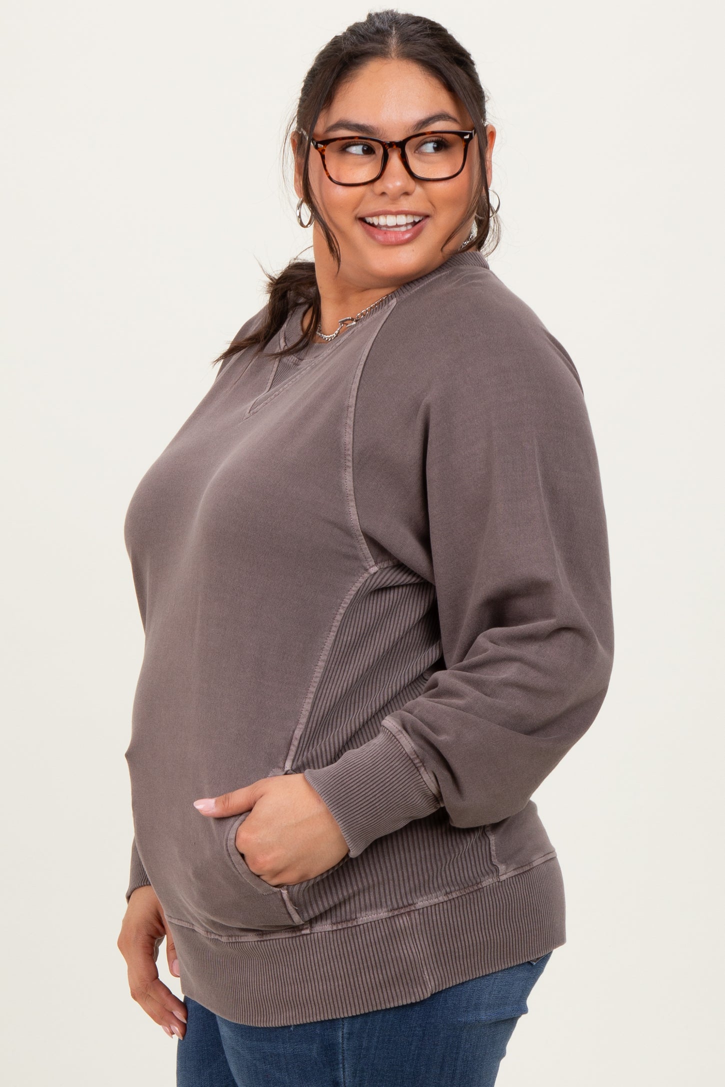 Stay cozy and stylish in our Brown Vintage Wash French Terry Plus Pullover. Designed with a relaxed fit for ultimate comfort, this pullover features soft French terry fabric with a trendy vintage wash for that effortlessly worn-in look. Ribbed cuffs, neckline, and hem add subtle detail while keeping warmth in. Perfect for casual days or layering on chillier evenings, it pairs beautifully with your favorite jeans or leggings. Embrace everyday ease and plus-size flattering style in this must-have wardrobe essential. Available in a range of sizes to suit your shape. Easy care and easy wear!