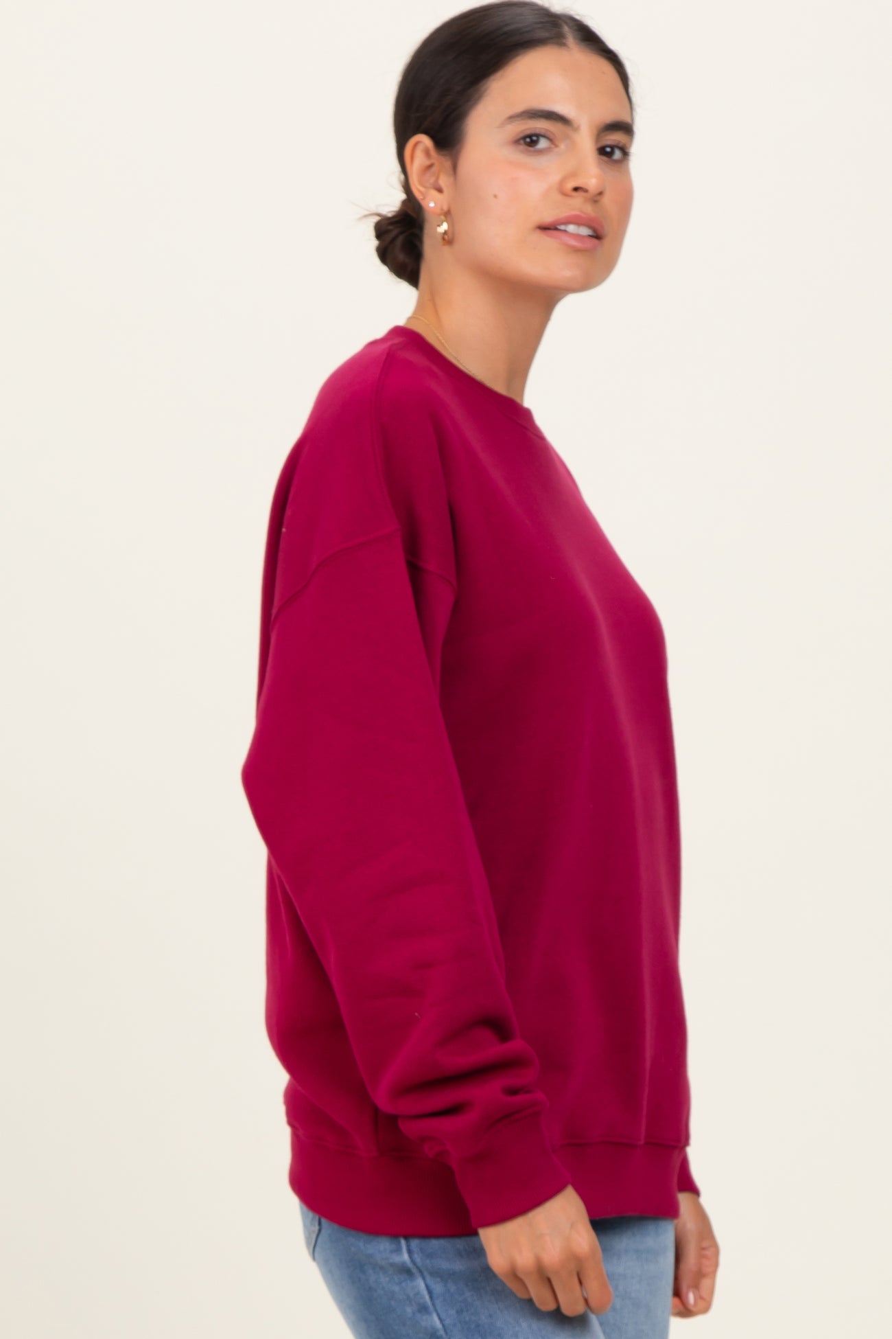 Burgundy Fleece Crew Neck Relaxed Fit Sweatshirt