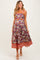 Burgundy Floral Contrast Print Sleeveless Maternity Midi Dress