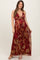 Burgundy Floral Deep V-Neck Back Cutout Maternity Maxi Dress