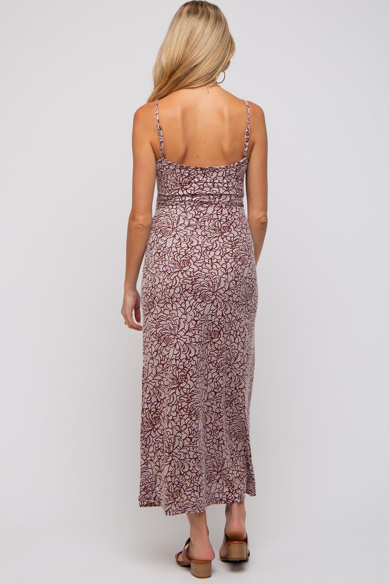 Burgundy Floral Sleeveless Maternity Maxi Dress
