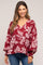 Burgundy Floral V-Neck Long Sleeve Maternity Blouse