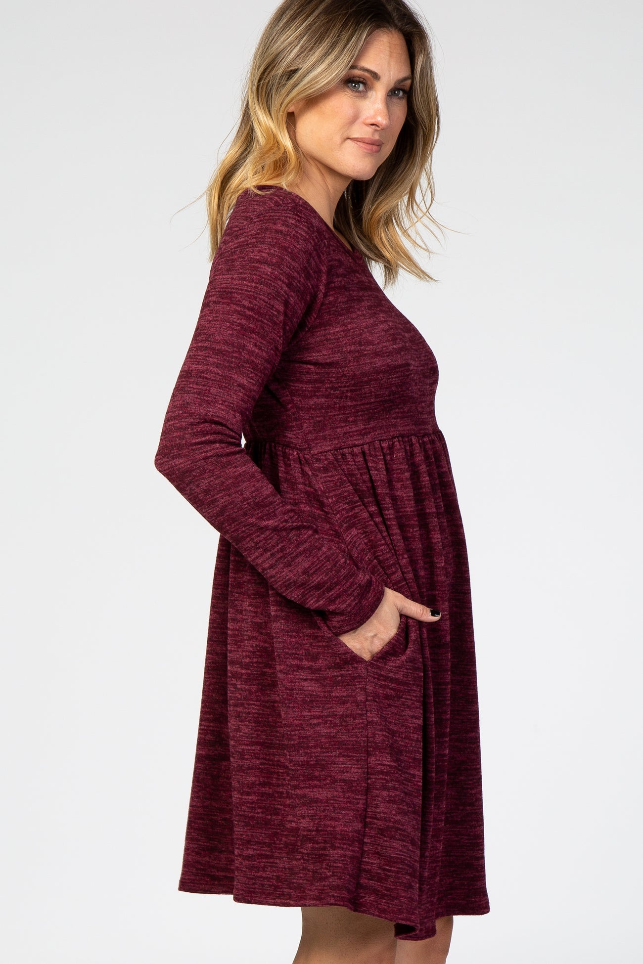 Burgundy Heathered Long Sleeve Knit Dress