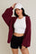 Stay cozy and stylish with our Burgundy Oversized Zip-Up Cardigan. Crafted from soft, chunky knit fabric, this cardigan features a relaxed fit with balloon sleeves for an effortlessly chic look. The full zip closure and attached hood add a sporty edge, making it perfect for layering. Whether you're lounging at home or out on the town, this versatile piece pairs perfectly with your favorite crop tops and shorts or jeans. Embrace comfort and fashion all in one with this must-have wardrobe essential. Available in a rich burgundy hue to brighten up any outfit!