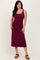 Burgundy Ruched Drop Waist Sleeveless Midi Dress