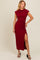 Burgundy Ruched Mock Neck Slit Midi Dress