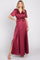 Details A solid satin nursing dress featuring a wrap v-neckline with a snap button closure, short sleeves and a self-tie waist. Content + Care