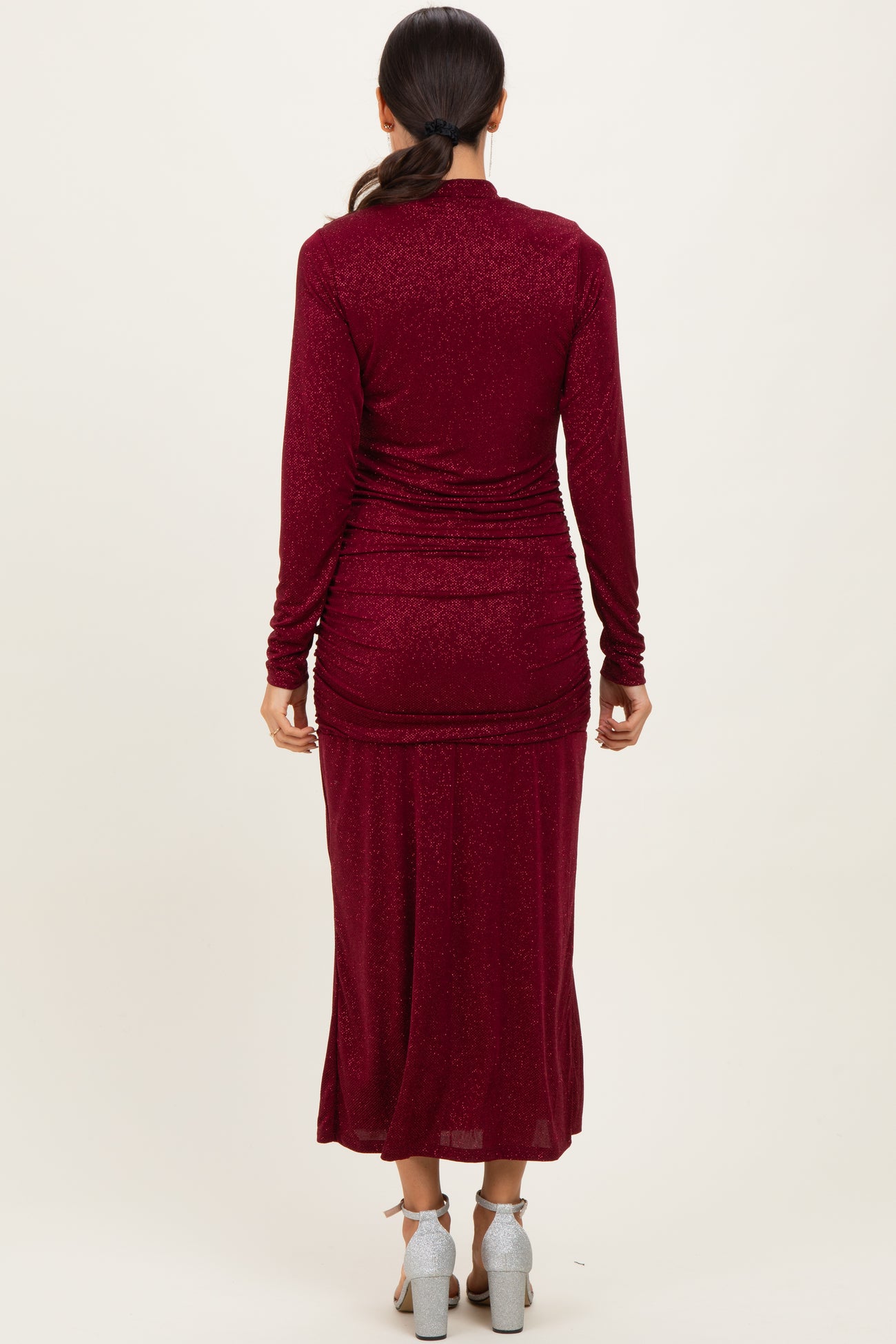 Elevate your evening look with our Burgundy Sequin Long Sleeve Mock Neck Maxi Dress. Crafted in a rich burgundy hue, this dazzling dress features an elegant mock neck and full sleeves for a sophisticated silhouette. The shimmering sequined fabric catches light beautifully, while the ruched detailing at the waist enhances your natural curves. Its floor-length design with a subtle side slit adds a touch of grace and ease of movement. Perfect for gala dinners, holiday parties, or special occasions, pair it with your favorite heels and minimal accessories for a stunning finish. Feel confident, chic, and unforgettable in this glamorous maxi dress.