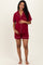 Burgundy Short Sleeve Button Down Shirt Shorts Maternity Set