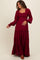 Burgundy Smocked Long Sleeve Ruffle Tiered Maternity Maxi Dress