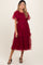 Burgundy Smocked Ruffled Mesh Maternity Midi Dress
