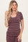 Elevate your casual wardrobe with this Burgundy Stripe Short Sleeve Round Neck Top. Featuring a flattering scoop neck and soft, breathable fabric, this top offers both comfort and style. The classic horizontal stripes in rich burgundy and soft beige create a timeless look, perfect for pairing with jeans, skirts, or shorts. Its ribbed texture adds subtle dimension, making it a versatile piece for everyday wear or relaxed weekends. Easy to dress up or down, this top combines effortless chic with all-day comfort. Available in multiple sizes to fit your style and shape beautifully.
