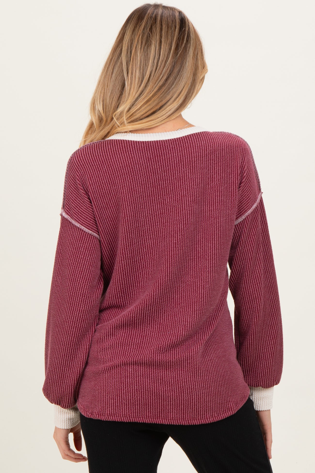 Burgundy Textured Rib Bubble Sleeve Maternity Henley
