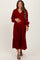 Burgundy Velvet Button Accent Smocked Sleeve Maternity Midi Dress