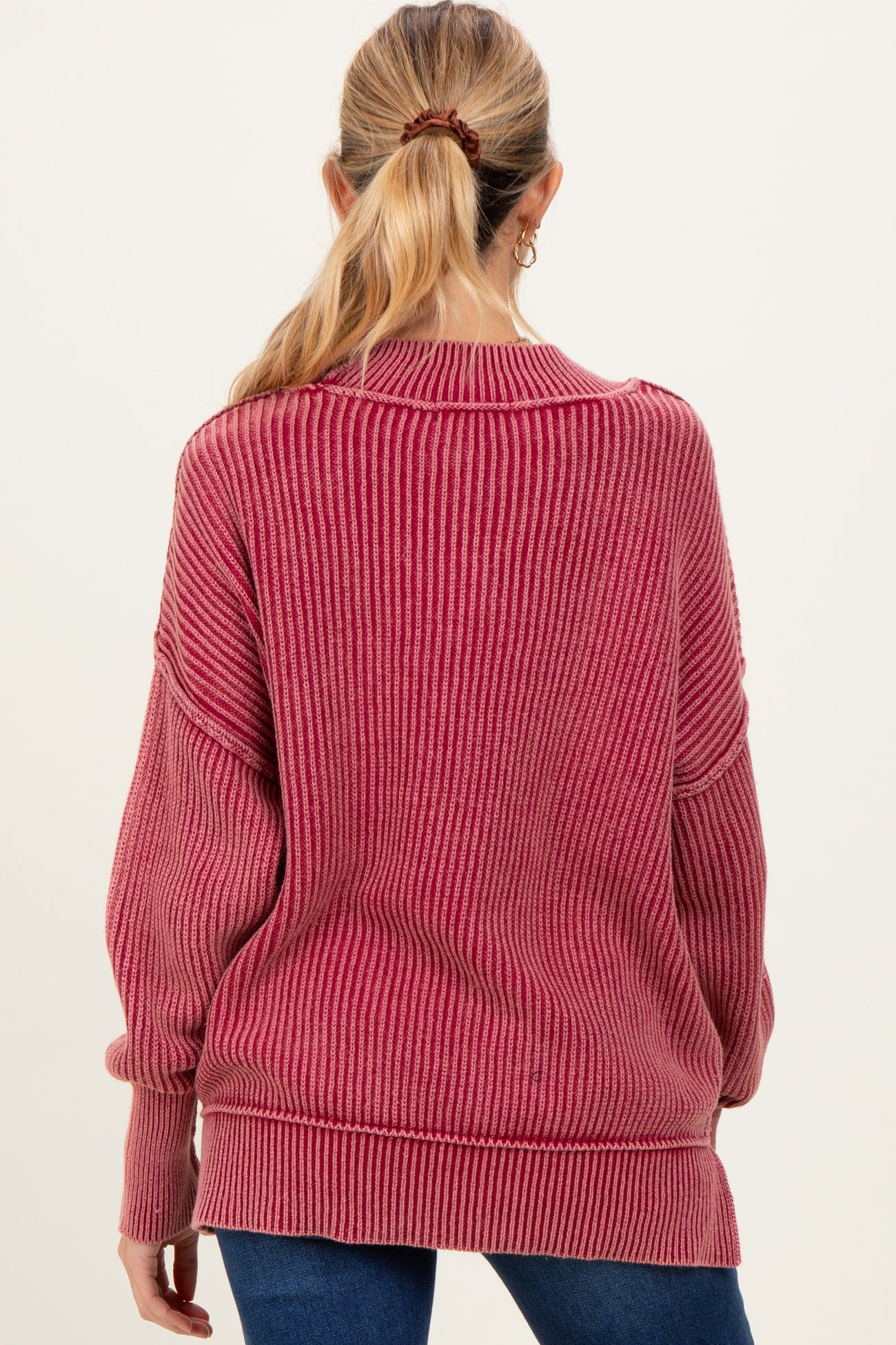 Burgundy Washed Side Slit Oversized Maternity Sweater