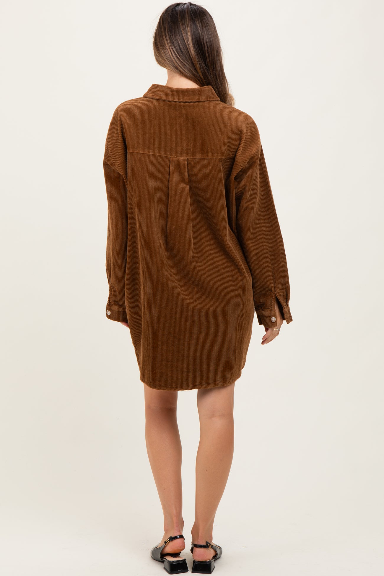 Cozy and stylish, our Camel Corduroy Maternity Shirt Mini Dress is a must-have for your pregnancy wardrobe. Crafted from soft, breathable corduroy fabric, this dress offers gentle stretch and comfort to accommodate your growing bump. Featuring a classic button-down front, long sleeves with button cuffs, and a relaxed mini dress fit, it's perfect for layering or wearing solo. The warm camel hue adds a chic autumnal touch, making it versatile for everyday wear or casual outings. Embrace effortless maternity style without compromising on comfort with this timeless shirt dress. Available in multiple sizes.