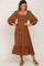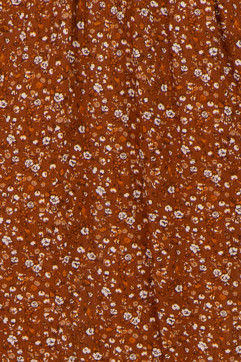 Details A floral printed midi dress with a squared neckline, 3/4 length sleeves, a gathered bottom tier, and a back zipper closure. Content + Care