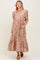 Camel Floral Tiered Puff Sleeve Midi Dress