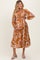 Camel Floral Twist Front Long Sleeve Maternity Midi Dress