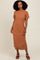 Camel Short Sleeve Side Slit T-Shirt Midi Dress